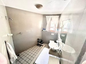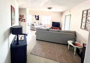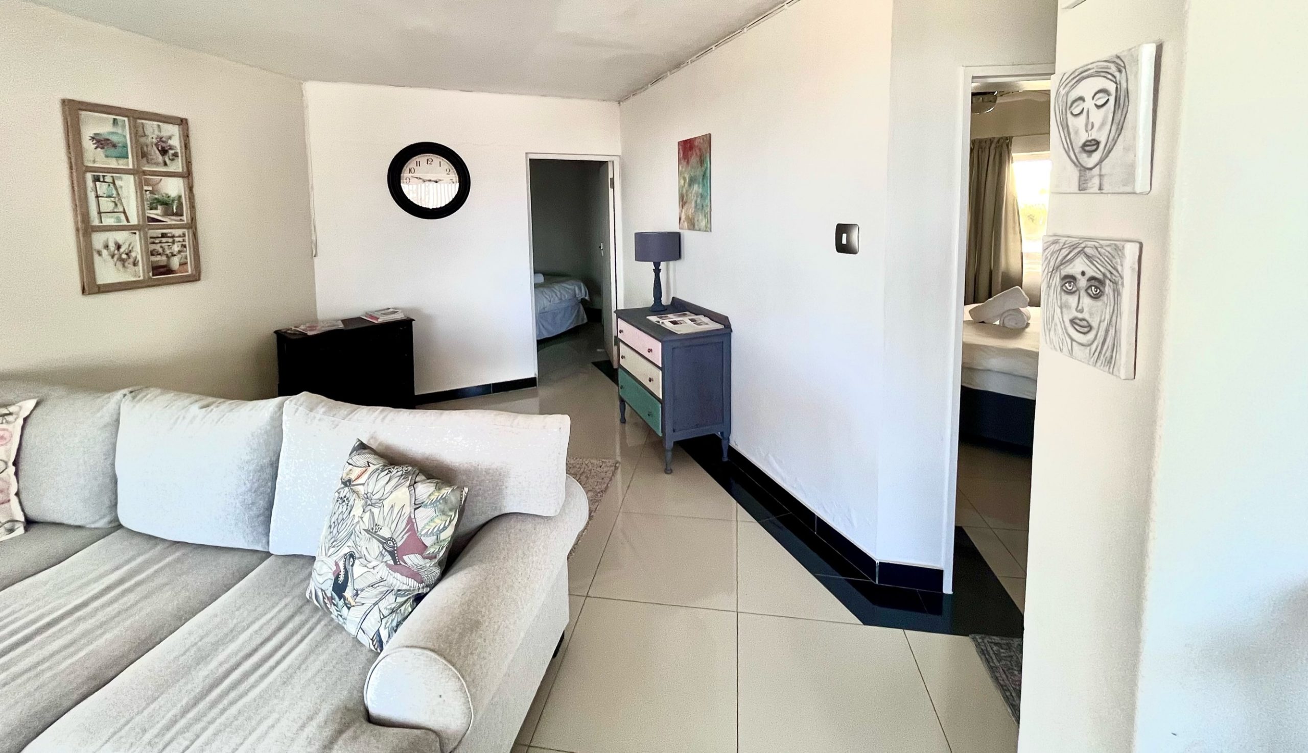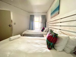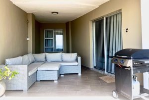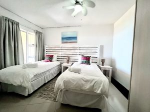 Apartment 2, is perfect for a small family of 2 adults and 2 kids.This 2-bedroom apartment has a main bedroom with a King size bed, and a 2nd room with 2 single beds.You are spoiled with Stunning sea views and views of the village from the lounge and patio. This spacious apartment has 1. 5 bathrooms, with some complimentary toiletries, an open plan kitchen, dining table, and breakfast nook.The patio has a 4seater patio set and a gas braai. In the unlikely event of feeling a little hot, 18 000 Btu airconditioner will have you cooled down in no time. A safe has also been added to store personal belongings. Ocean views can be seen from all the living areas. A large lounge with a daybed coach is perfect for relaxing.